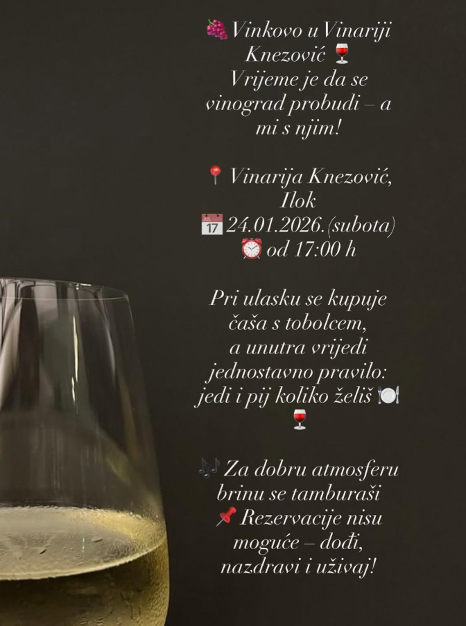 Pozivamo sve ljubitelje vina, tradicije i dobre zabave da posjete Ilok i dožive Vinkovo 2026. u najistočnijem gradu Hrvatske.